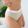 Bambusové nohavičky Kaja majú vysoký pás a sú stvorené pre ženy, ktoré hľadajú dokonalé spojenie pohodlia a elegancie. V páse ich zdobí jemná saténová gumička, ktorá dodáva luxusný vzhľad, a vďaka dvojitej vrstve materiálu pôsobia hladko a bez viditeľných švov. Mäkučký bambus sa krásne prispôsobí telu, je priedušný a príjemný aj pre citlivú pokožku. Kaja sú nohavičky, ktoré si zamiluješ pre ich jednoduchosť, mäkkosť a nadčasový dizajn.