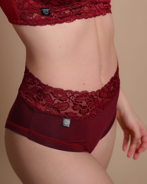 Bambusové nohavičky Mary ozdobené jemnou čipkou. Nohavičky majú podobný strih, ako Adel, vďaka upravenému strihu však lepšie obopnú pás. Bohatá čipka z nich robí exkluzívny kúsok. Nemajú žiadnu gumu, preto sú výnimočne pohodlné. Tieto nohavičky sú klasického strihu a nezarezávajú sa.