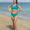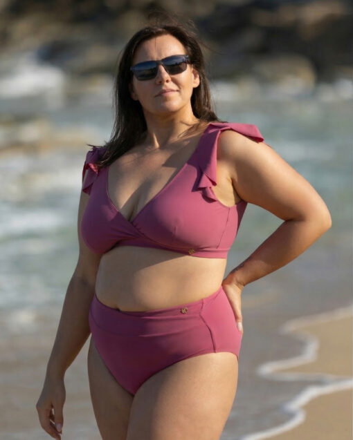 Štýlová plavková podprsenka Hawaii je ozdobená volánikmi na ramenách, ktoré okrem toho, že sú veľkým hitom tohto leta, majú ochrannú funkciu, Vaše ramená sa tak už nikdy na slniečku nespália. Vzadu je kovové zapínanie. Podprsenka je vhodná na väčšie, aj menšie prsia a vykúzli krásny dekolt, vďaka pevnej gume pod prsiami.